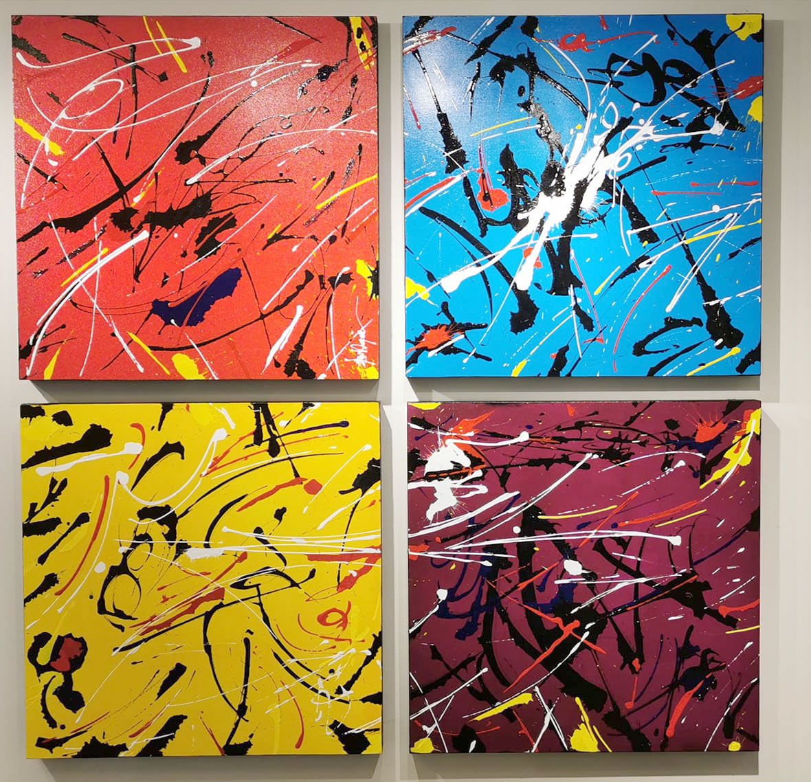 Libérer le geste, suivre les traces de l'abstraction des premiers pioniers des années 50, une vision explosive, des traits, une calligraphie anarchique, formes et de couleurs vives en mouvement sur des toiles grands formats. De l'art abstrait dans toute sa complexité et virtuosité gestuelle!(+)